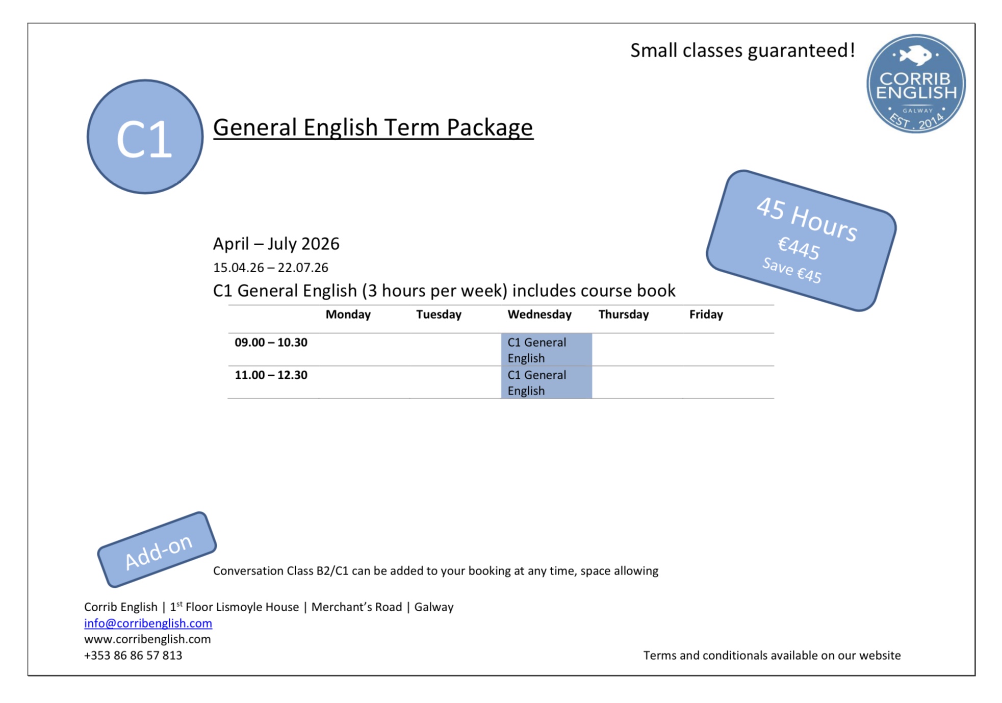 Maximum of 8 students per group | Morning, afternoon & evening options available | Fun & dynamic | Real progress
