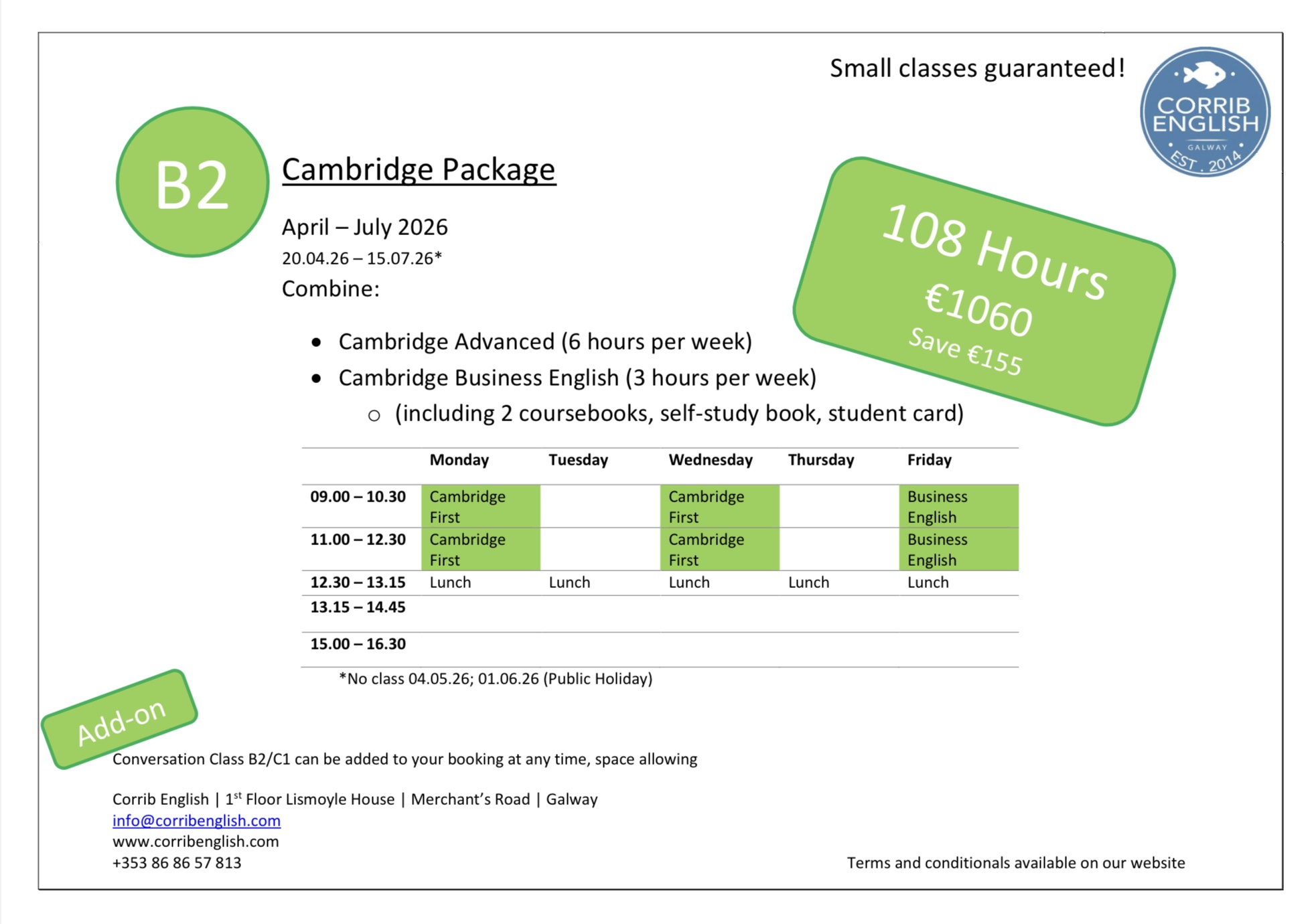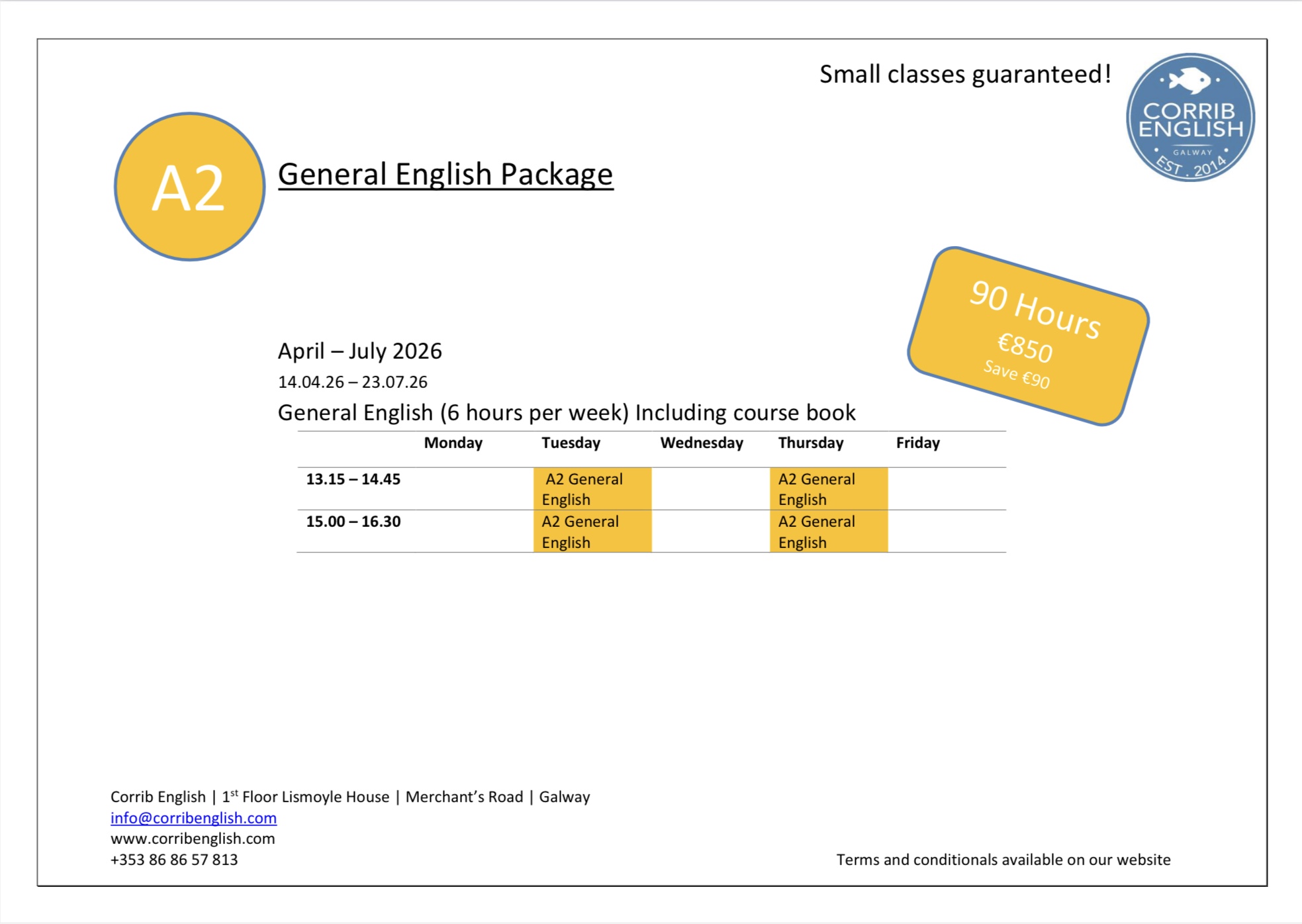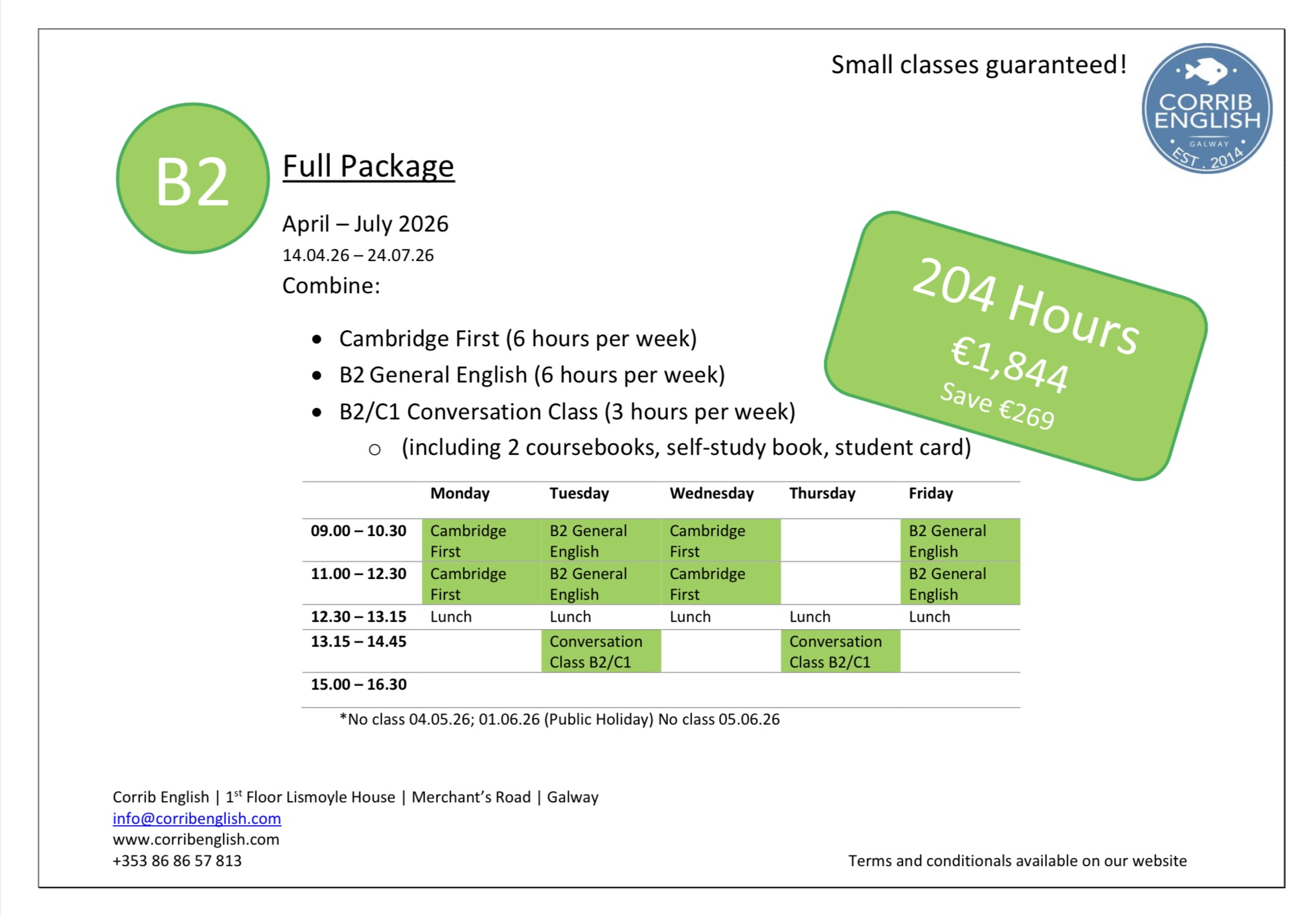 English Package Deals April – July 2026